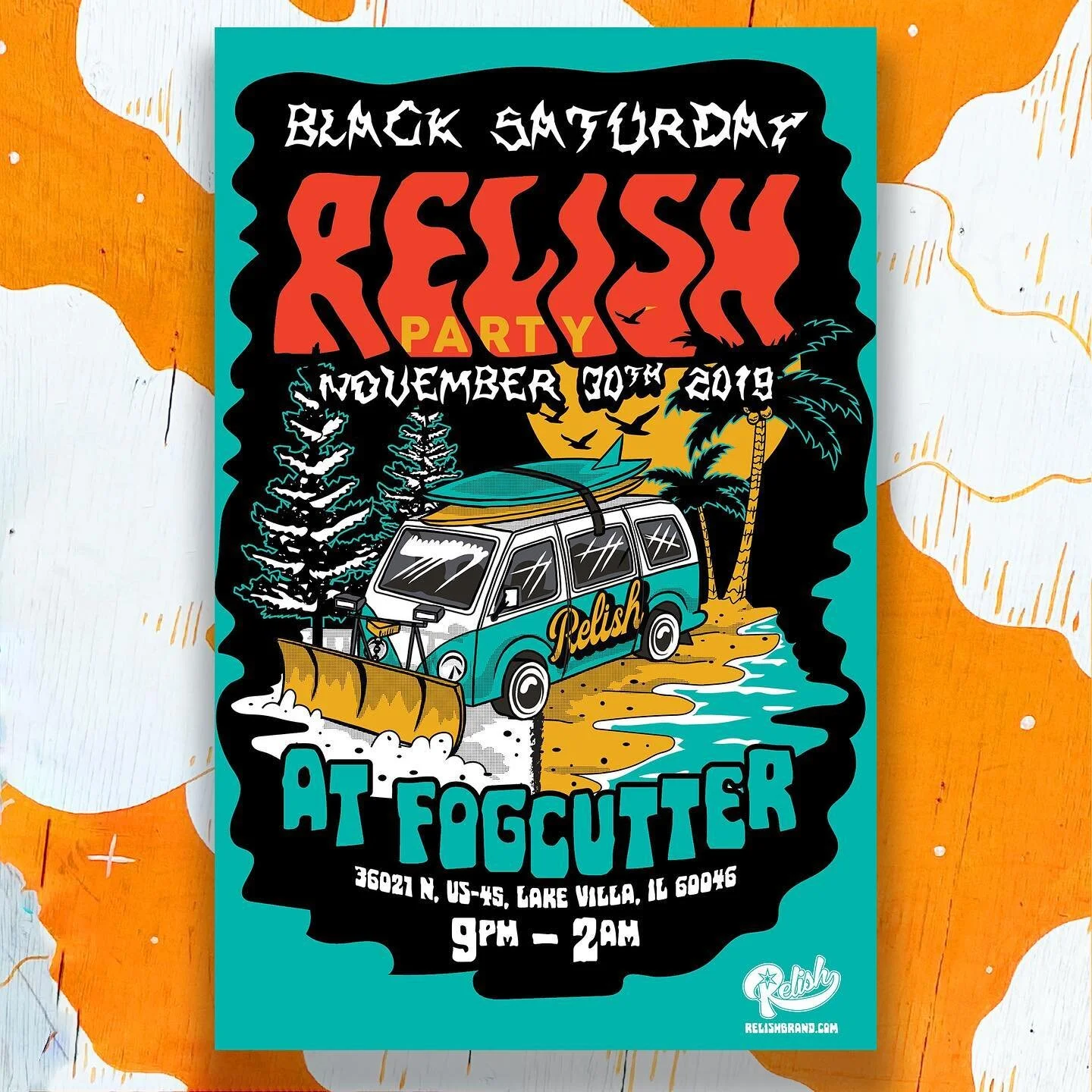Derrick worked as the production art manager at a promotional products company where he gained the knowledge of screen printing and sharpened his chops in graphic design. Through freelance designing, he gained a handful of clients that were interested enough in his art that he felt confident to invest in his own screen printing equipment. Relish has accumulated several loyal clients through word of mouth that they have now hired printers to keep up with the volume.